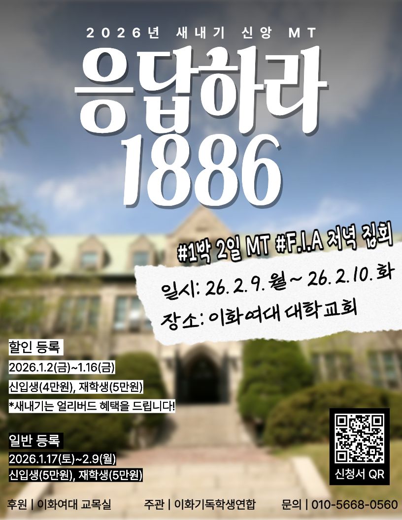 2026년 이화여대 새내기 신앙 MT에서 만나요!